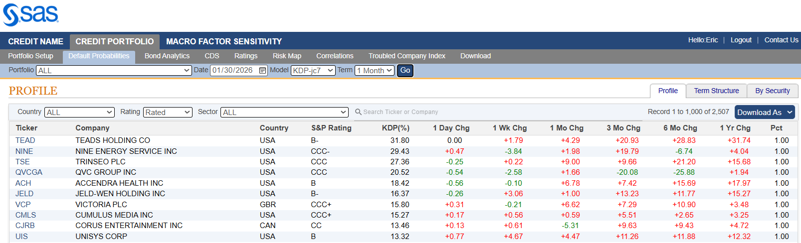 Table 4: Riskiest Rated Companies Based on 1-month KDP, January 30th, 2026