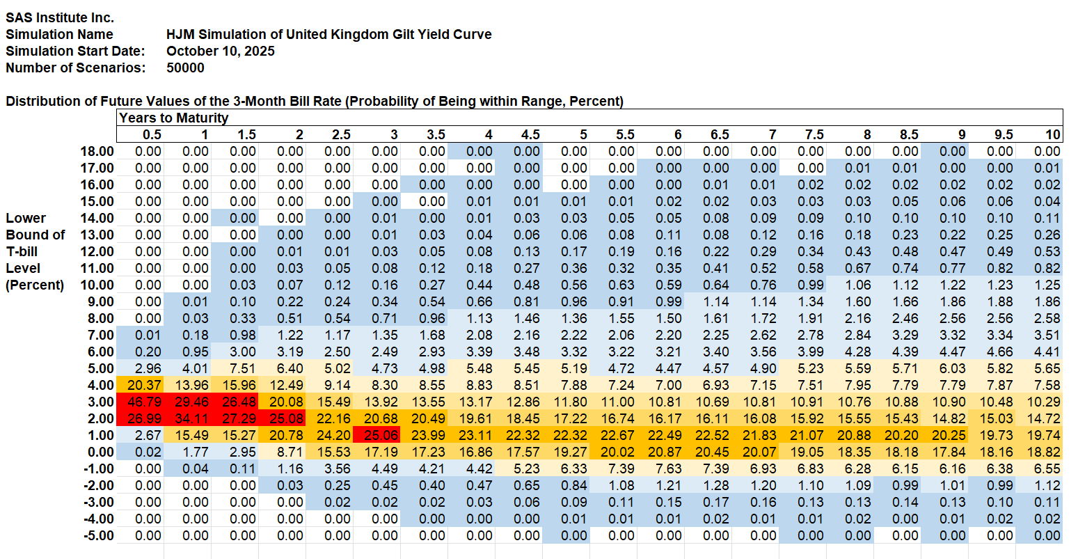 A summary simulation description and summary distributions for 3-month yields and 10-year yields are available for key markets in Asia (Australia, Japan, New Zealand, Singapore, and Thailand), North America (Canada and the United States) and Europe (Germany, Sweden, and the United Kingdom). Full simulation output is available via the KRIS risk data service. Links to this week’s results are given below: