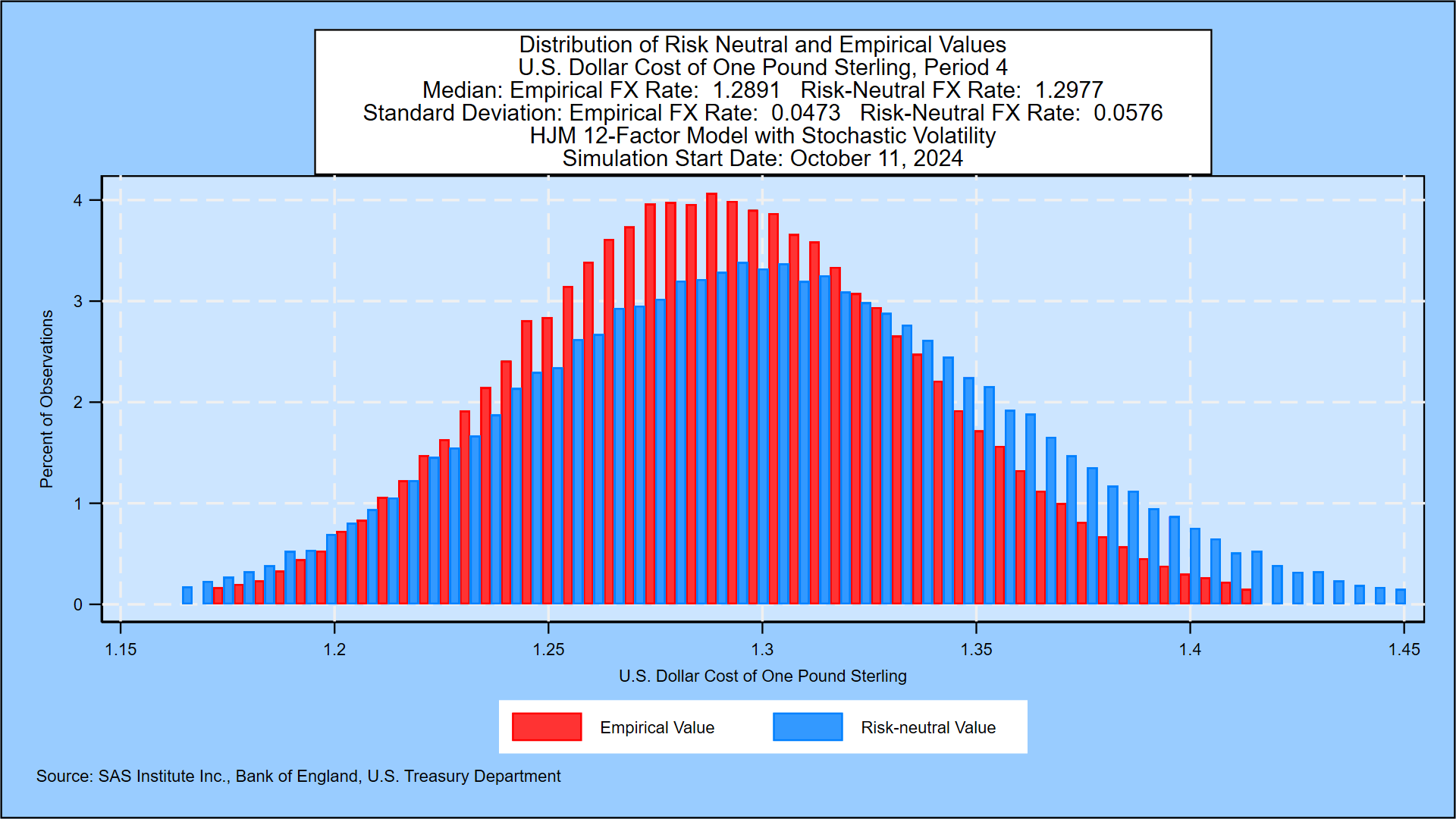 - The simulation with U.S. Treasuries shows a Pound/U.S. Dollar exchange rate at a median value of 1.2891 and a standard deviation of 0.0473 one year forward.