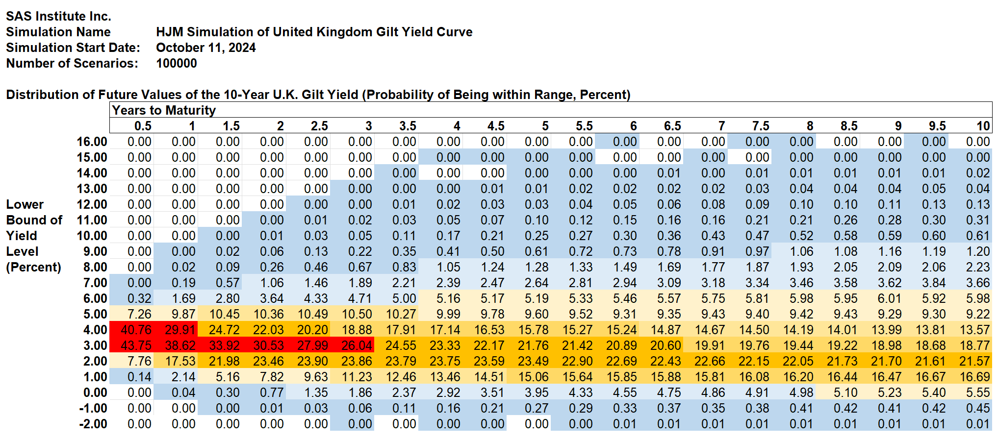 United Kingdom Gilt Yield Probabilities 10 Years Forward