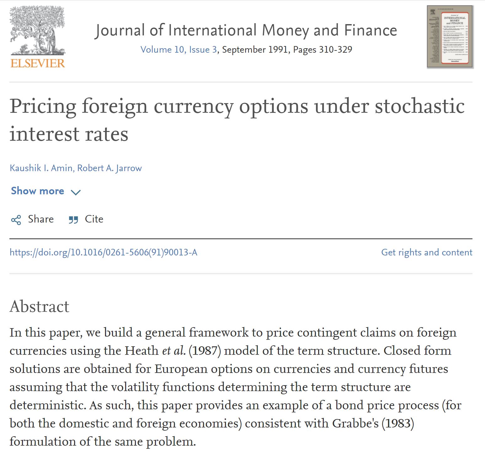The no-arbitrage foreign exchange rate simulation is based on this well-known paper by Amin and Jarrow: