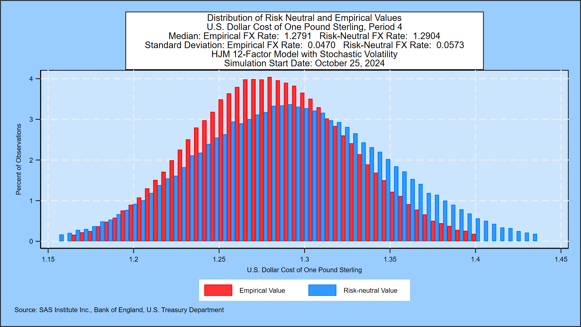- The simulation with U.S. Treasuries shows a Pound/U.S. Dollar exchange rate at a median value of 2791 and a standard deviation of 0.0470 one year forward.